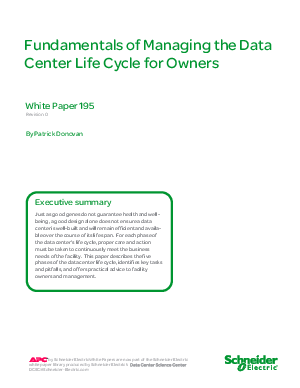 For each phase of the data center’s life cycle, proper care and action must be taken to continuously meet the business needs of the facility. Schneider breaks down the data center life cycle down into 5 phases of: