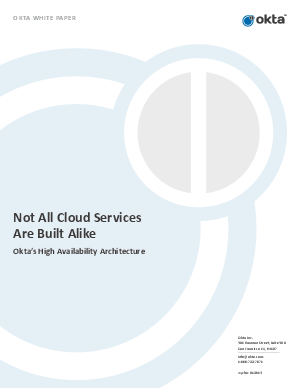 An on demand identity & access management service is a core cloud infrastructure services and should be: - Built for Web Scale - the service must scale up and down seamlessly with your needs. - Always Available ? the service must be architected for zero downtime. No maintenance windows required. - Secure ? the service must be more secure than anything you could build and operate on your own. - Constantly Evolving ? the service must deliver rapid innovation that enables new capabilities and insulates you from the constantly changing IT landscape.At Okta we take this to heart and have built the software, operationalized the processes and hired the people it takes to deliver on all of these fronts. This technical whitepaper will provide an overview of the software and operational architecture that enables Okta to run a scalable, highly available, on demand identity and access management service.
